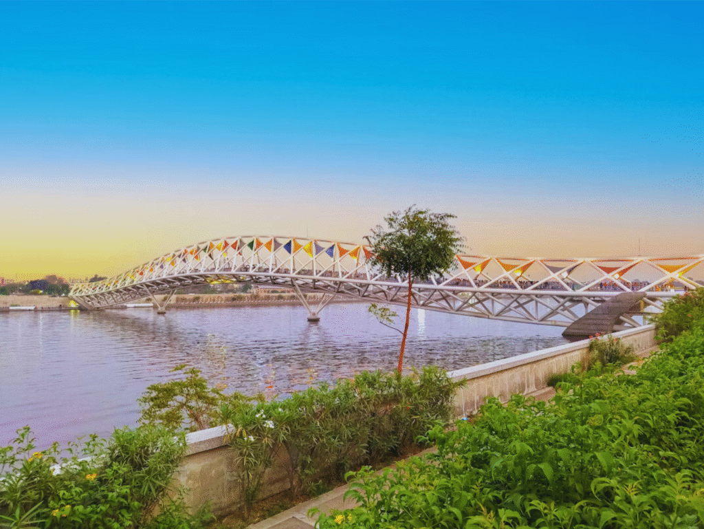 Day 2: Heritage & Cultural Tour [Sabarmati Ashram – Riverfront – Kankaria Lake – Adalaj Stepwell – Akshardham Temple – Science City – Sidi Saiyyed Mosque – Hathisingh Jain Temple – Law Garden Market]